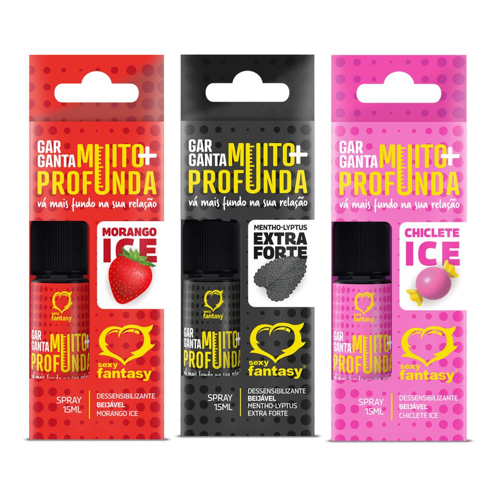 O Garganta Muito Mais Profunda é um produto feito especialmente para aquele pontapé inicial na sua noite, com uma ação Dessensibilizante surpreendente, o Spray Beijável da Sexy Fantasy torna sua prática do famoso “Boquete” mais confortável, prazerosa e com um sabor e uma sensação Ice maravilhosa.